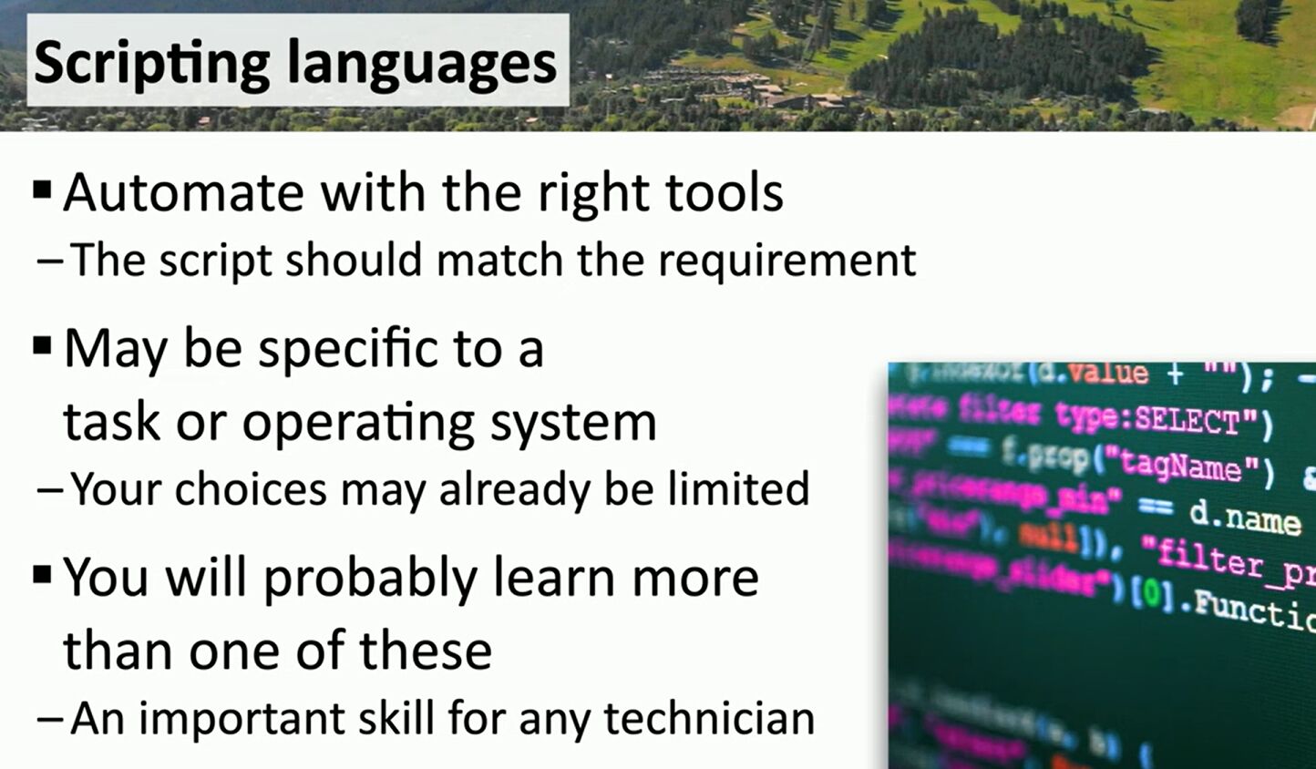 Many technicians will likely learn more than one scripting language throughout their career, which is an invaluable skill.