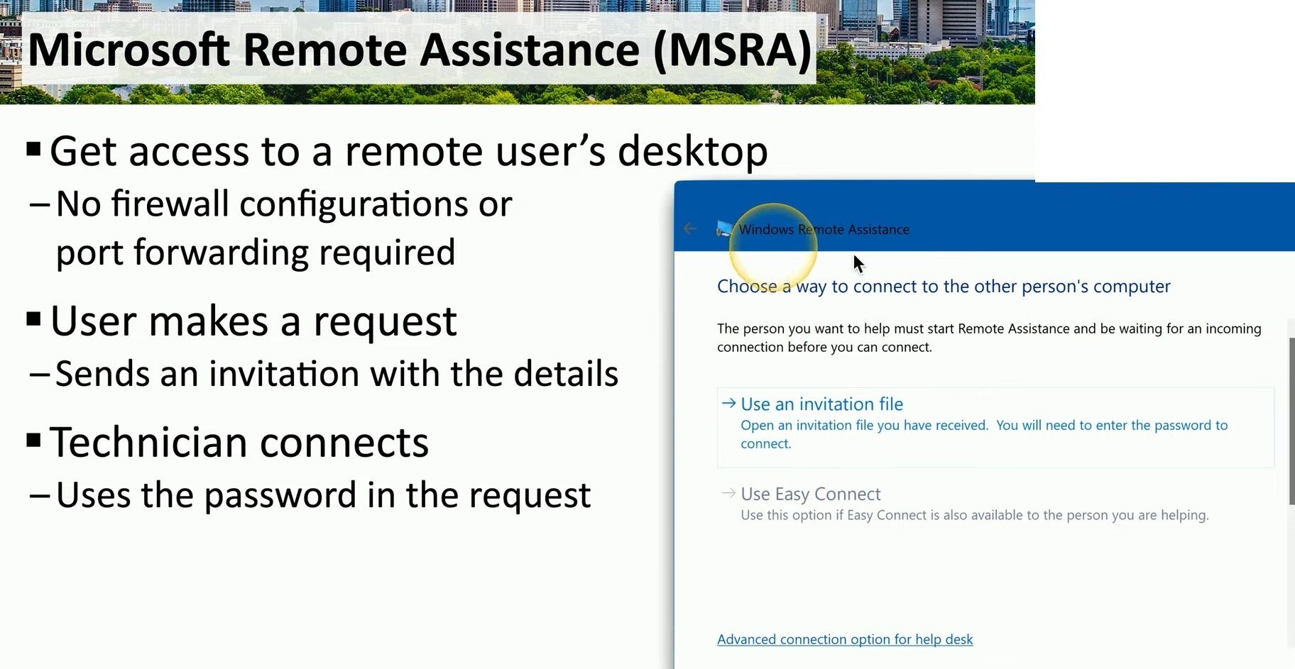 Microsoft Remote Assistance (MSRA) is a built-in Windows feature that facilitates secure remote support, allowing users to receive help from technicians without needing extensive network configurations like port forwarding or firewall adjustments. Developed to simplify remote assistance, MSRA has become a trusted tool for both home users and IT professionals.