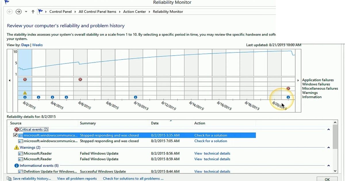 Il Reliability Monitor di Windows è uno strumento potente ma poco conosciuto che consente di analizzare la stabilità complessiva del sistema nel tempo.